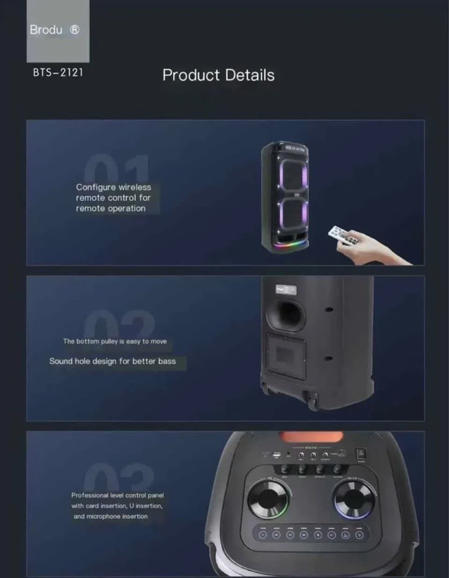 بلندگوی کوچک قابل حمل مهمانی Bt-2121 با قابلیت اتصال بیسیم USB به TF TWS، بلندگوی 10 اینچی