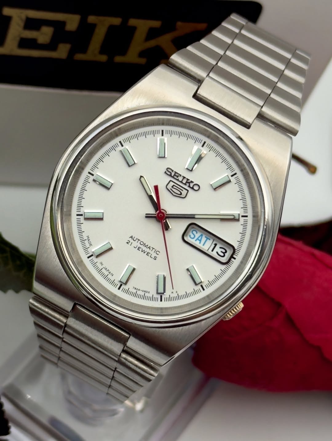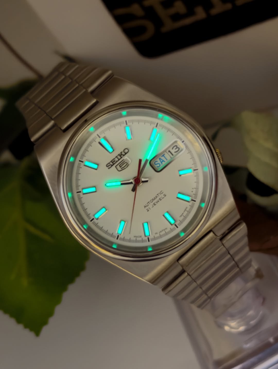 ساعت سیکو ژاپنی ساعت سیکو مدل اومگای صفحه صدفی پرطرفدار و کمیاب خیلی شیک و زیبا اتوماتیک ساخت ژاپن۲۱سنگ جواهرکالبیر 7s26پشت شیشه تمام فابریک دارای جعبه و کارت سیکوقاب درشت زیبا ۲تقویم انگلیسی عربی شب نما داربی نهایت زیباست شیک