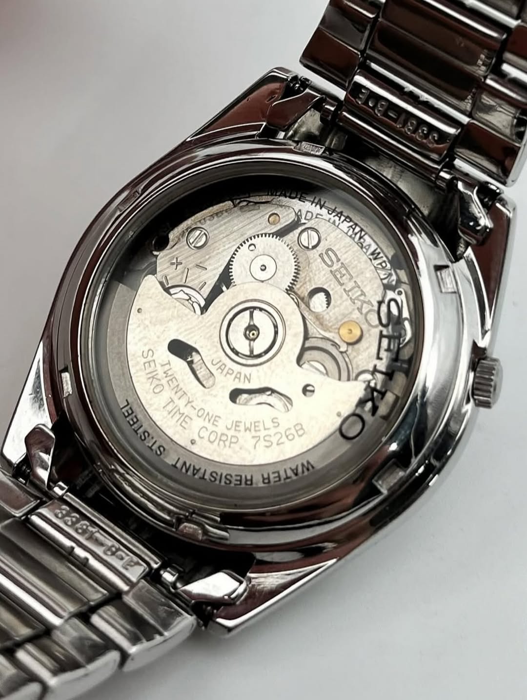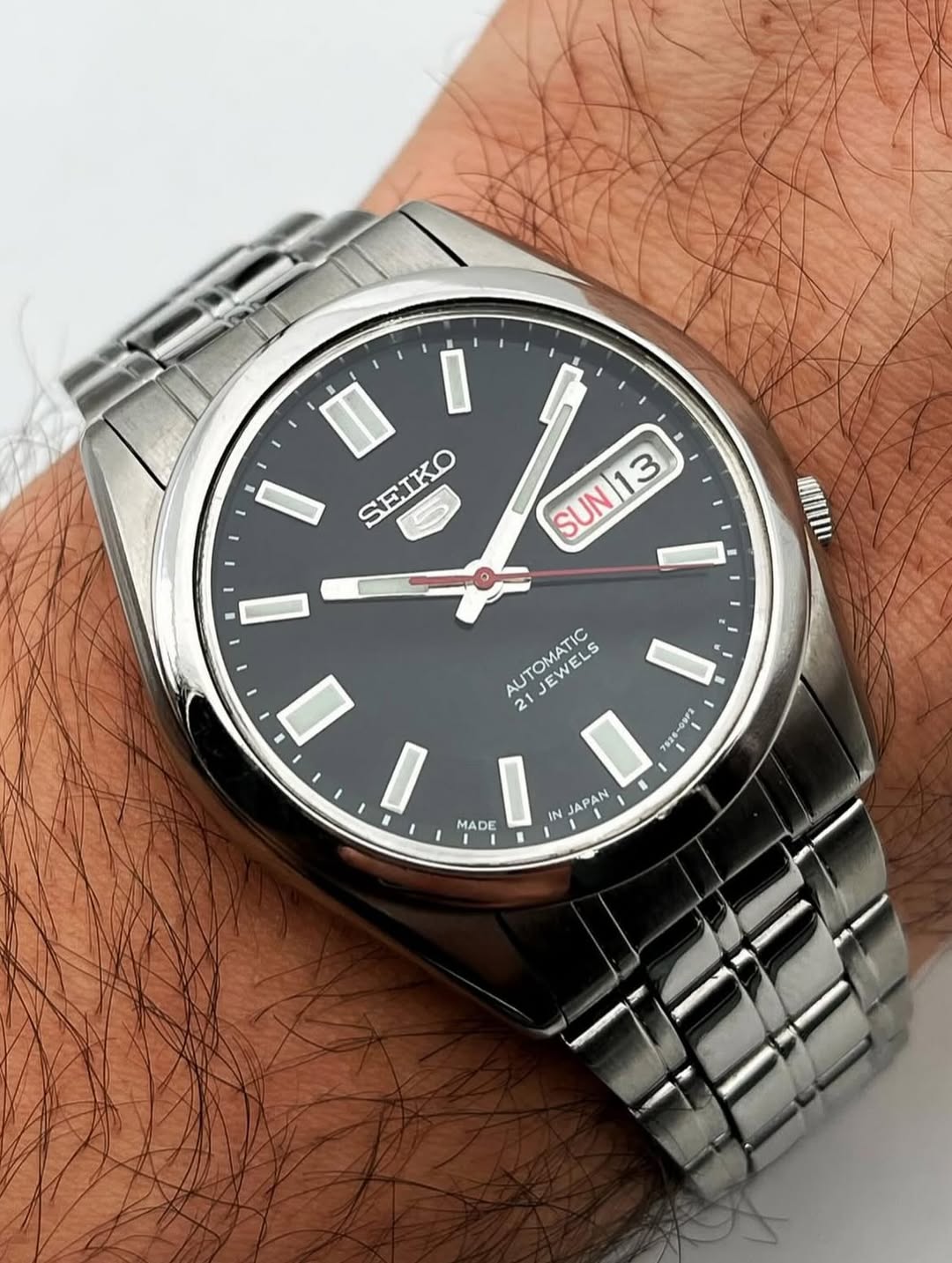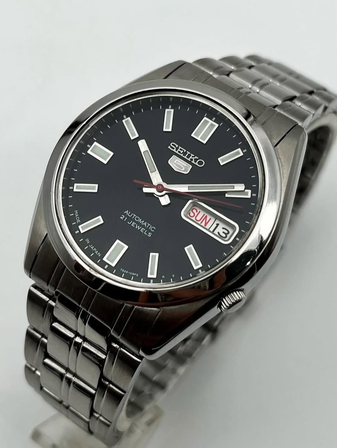 برند ساعت سیکو ژاپنی 🇯🇵ساعت سیکو۵ مدل مهندسی صفحه مشکی کمیاب یه کار خاص شیک اتوماتیک ساخت ژاپن۲۱سنگ جواهرکالبیر 7s26پشت شیشه ای۲تقویم انگلیسی عربی شب نما داربی نهایت زیباست شیک