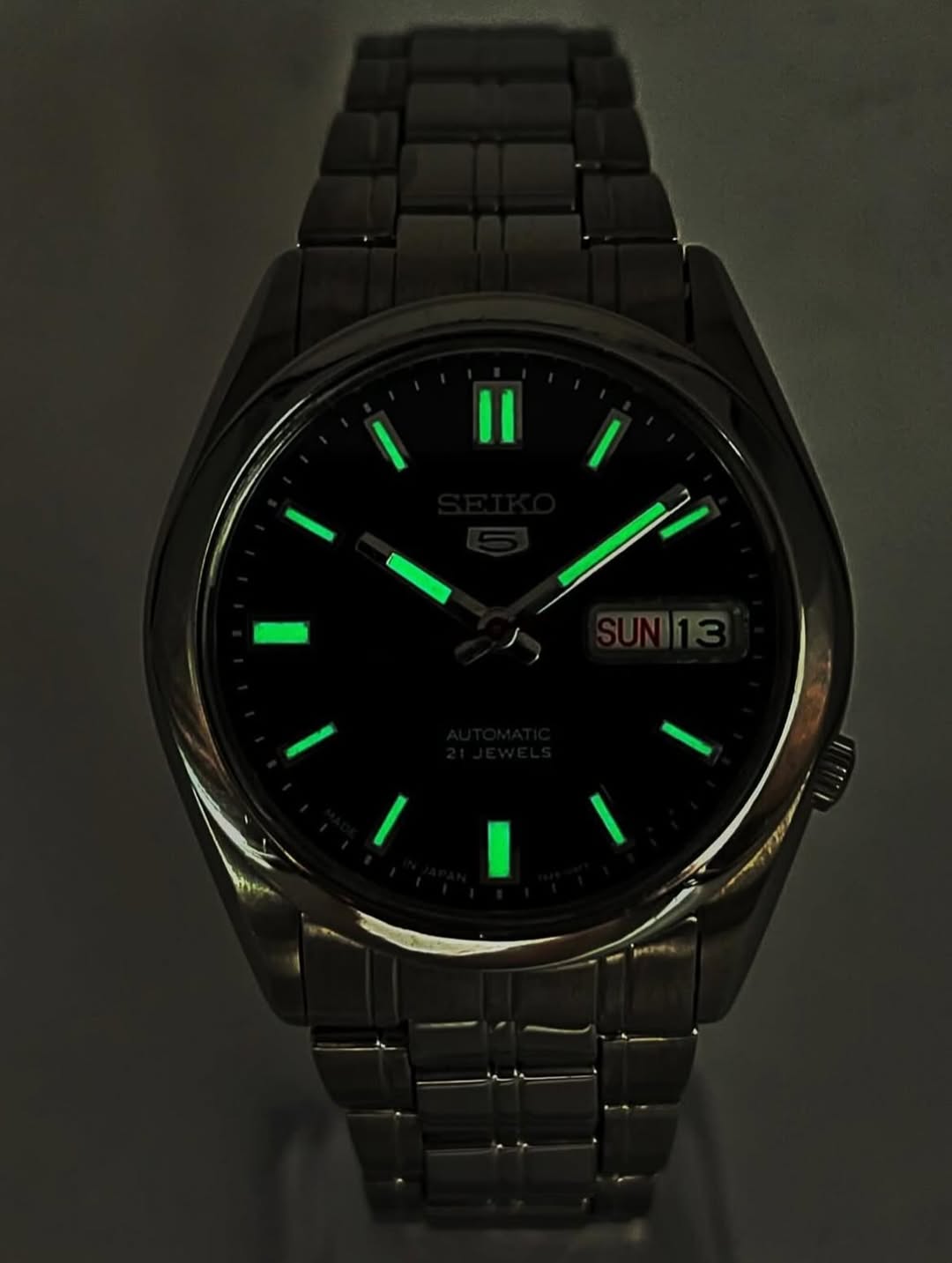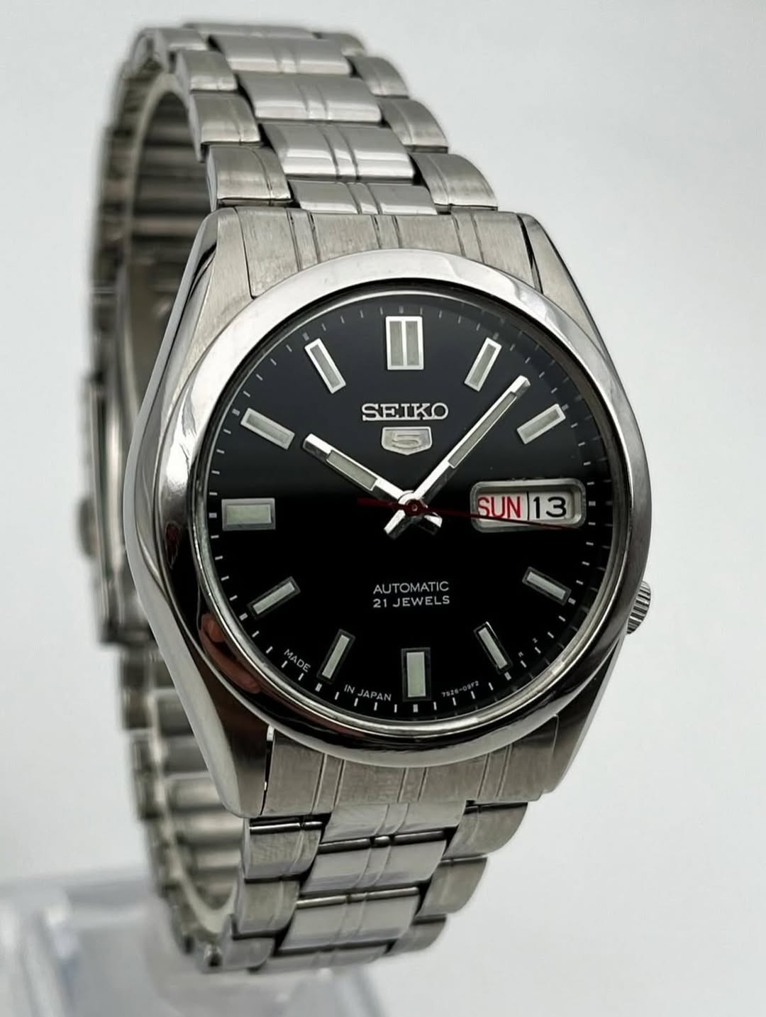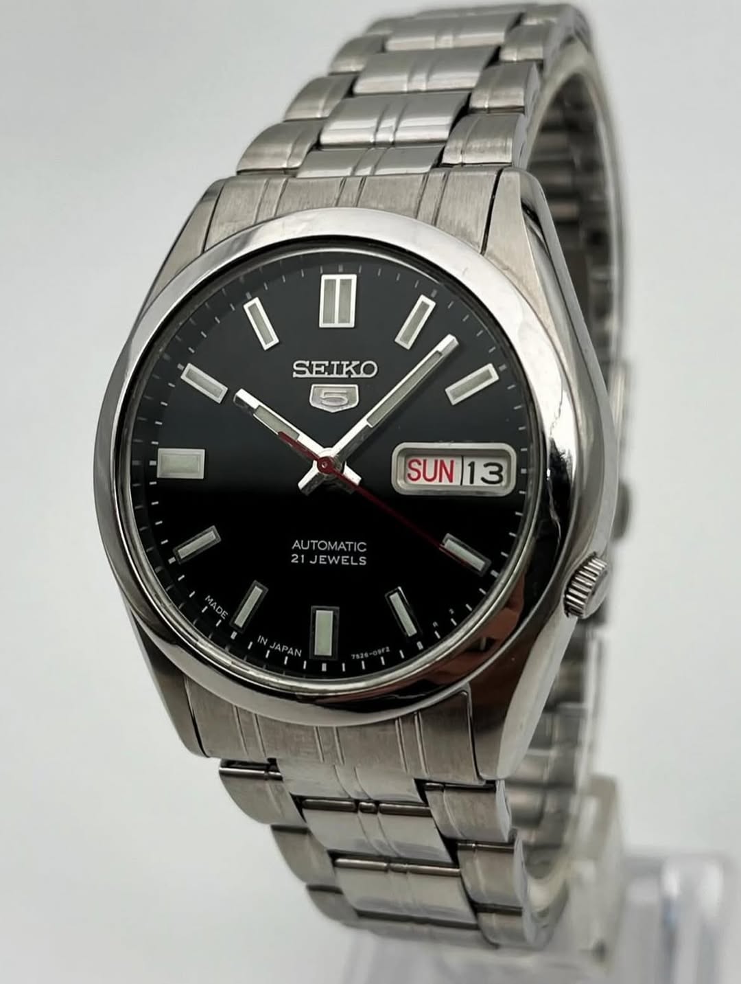 برند ساعت سیکو ژاپنی 🇯🇵ساعت سیکو۵ مدل مهندسی صفحه مشکی کمیاب یه کار خاص شیک اتوماتیک ساخت ژاپن۲۱سنگ جواهرکالبیر 7s26پشت شیشه ای۲تقویم انگلیسی عربی شب نما داربی نهایت زیباست شیک