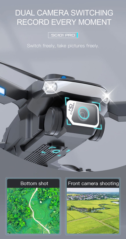 کوادکوپتر ZLL SG101 Pro قابلیت اجرای حرکات نمایشی 360 درجه، تغییر سرعت و پرواز در حالتهای مختلف هوشمند را دارد. این ویژگیها پرواز را مهیجتر و سرگرمکنندهتر میکنند. شما میتوانید با استفاده از این قابلیتها لحظات فراموشنشدنی خلق کنید.