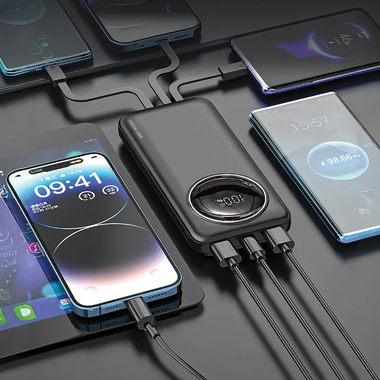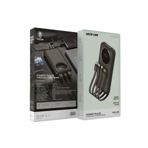 پاور بانک گرين لاين مدل پاور پالس 10000 میلی آمپر ساعت power puls ویژگی ها نمایشگر دیجیتال کابل داخلی شارژ سریع PD 22.5W 2 پورت USB-A پورت/کابل Type-C کابل لایتنینگ کابل USB-Micro
