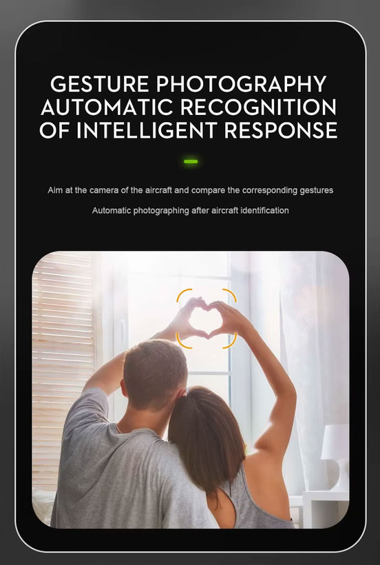 تصویربرداری با ژست (Hand Gesture Photography) در کوادکوپتر S5S Mini یک قابلیت هوشمند و بسیار جذاب است که به شما اجازه میدهد بدون لمس ریموت یا موبایل فقط با نشان دادن یک حرکت دست، فرمان عکاسی یا فیلمبرداری بدهید. در این حالت، پهپاد با استفاده از سنسورهای دیداری حرکات مشخصی مثل نشان دادن کف دست یا علامت V (علامت پیروزی) را تشخیص میدهد و به طور خودکار عکس میگیرد یا فیلمبرداری را شروع میکند. این قابلیت معمولاً در فاصله ۱ تا ۵ متری از پهپاد فعال میشود و برای ثبت تصاویر گروهی، سلفیهای هوایی یا زمانی که دسترسی سریع به کنترلر ندارید، بسیار کاربردی و راحت است. تصویربرداری با ژست، تجربه کاربری را سرگرمکنندهتر و حرفهایتر میکند، به خصوص در موقعیتهایی که میخواهید بدون کمک دیگران عکس بگیرید.
