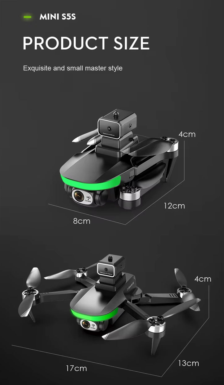 هلی شات ارزان قیمت MINI S5S محصولی از شرکت چینی GRAYCEWODY است. پیشتر نیز این کمپانی محصولی با نام S5 را ارایه کرده بود که این محصول نمونهی جدید و 2023 آن محصول است. این محصول برای پروازی هوشمندانه در آسمان و تصویربرداریهای هوایی مناسب است و قابلیتهای پروازی متعددی را برای افراد مبتدی تا حرفهای در اختیار میگذارد. پهپاد سنسور S5S از انواع کوادکوپترهای تاشو است و حمل آسان و راحتی دارد. از جمله ویژگیهای این محصول پروازی میتوان به لندینگ و تیکاف خودکار، بازگشت خودکار به مبدا، انتقال تصویر بدون درنگ، کنترل صوتی و سنسور عدم برخورد اشاره کرد.