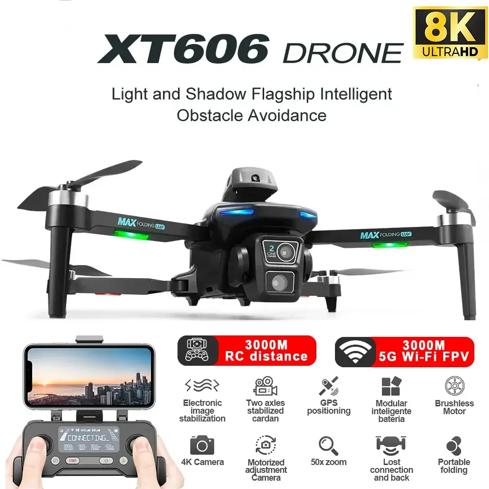 پهپاد XT606 با قابلیت بزرگنمایی دیجیتال تا 50 برابر، امکان مشاهده و ثبت جزئیات دقیق از فاصله دور را برای شما فراهم میکند. این ویژگی به شما اجازه میدهد بدون نیاز به نزدیک شدن به سوژه، تصاویر و ویدئوهای باکیفیت و شفاف تهیه کنید. بزرگنمایی دوربین برای عکاسی از مناظر طبیعی، بررسی محیط های دوردست یا ثبت لحظات خاص بسیار کاربردی است و تجربهای حرفهای از تصویربرداری هوایی را برای شما به ارمغان میآورد.