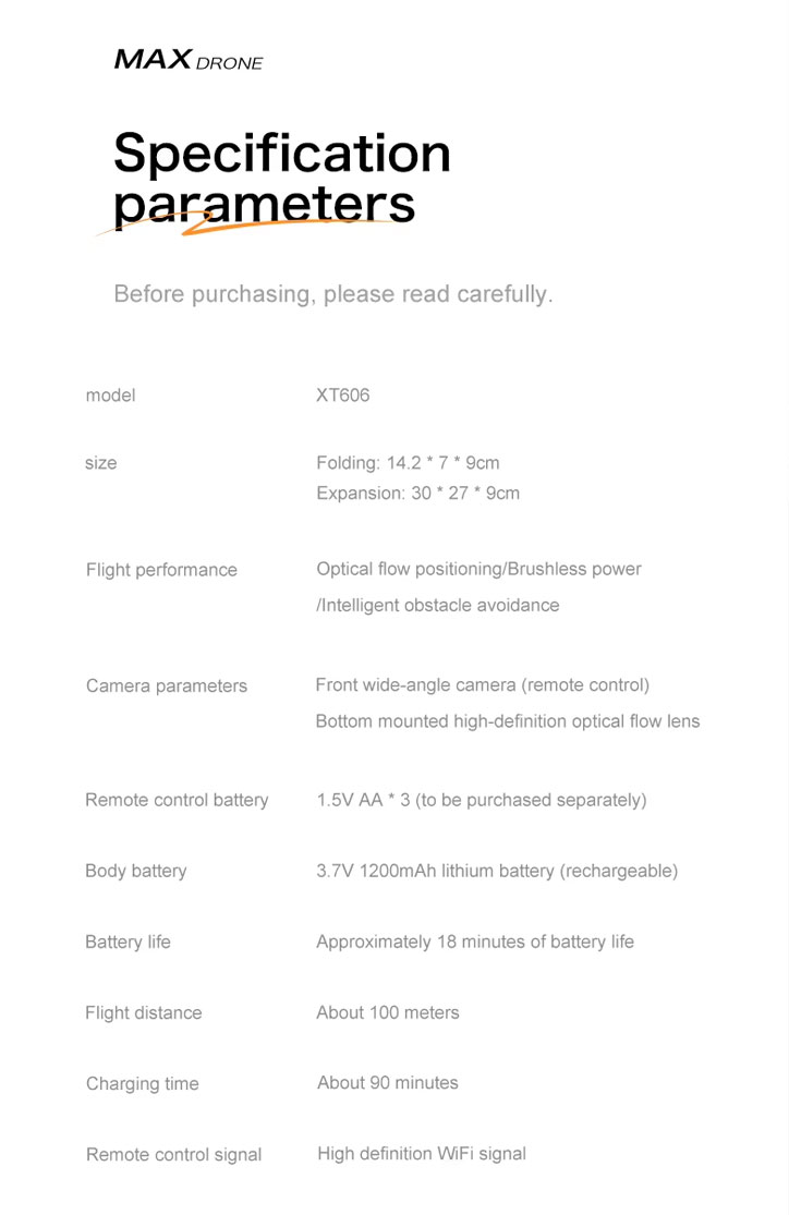 ریموت کنترل کوادکوپتر XT606 با طراحی ساده و کاربرپسند، امکان کنترل دقیق و آسان این پهپاد را برای کاربران فراهم میکند. منبع تغذیه این کنترلر 3 عدد باتری AA است که به صورت جداگانه باید تهیه شود. با استفاده از فناوری 2.4 گیگاهرتز، ریموت کنترل تا محدوده 500 متر بدون تداخل عمل میکند و کنترل دقیق پرواز، تغییر جهت، و تنظیم حرکات را امکانپذیر میسازد. ویژگیهایی مانند بازگشت به خانه، حالت هدلس (Headless Mode)، و تنظیم سرعت، تجربه پروازی حرفهای و راحت را به کاربران ارائه میدهد.